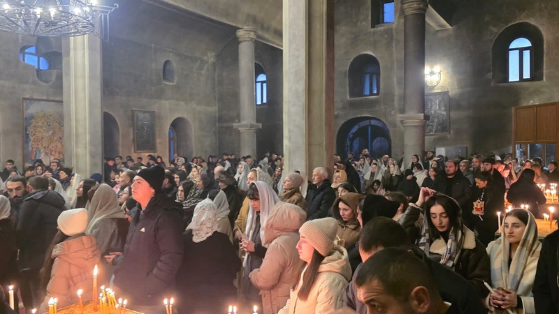 В 17:00 в церкви Сурб Хач Ахалкалаки началась Святая Литургия празднования Рождественского Сочельника (Чракалуйц). Слово “Чракалуйц” в переводе с армянского означает “зажжение светильников (лампад), свечей”. Литургию провел духовный наставник церкви Сурб Хач священник Тер Нарек Тигранян под председательством Главного викария Самцхе-Джавахети и Цалки преподобного Вардапета Тер Ншана Амаякяна.